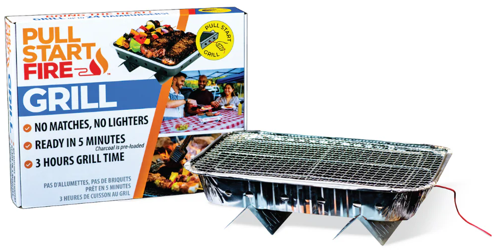 In 2023’s Holiday Gift Guide we highlighted the handy and impressive Pull Start Fire firestarters which, as the name implies, burst into flame just from pulling a string. Now the company is back with a portable disposable grill, using their pull-start technology and a pre-loaded solid charcoal brick. One pull, and it’s ready to go in five minutes, and delivers up to three hours of high, even heat, with corner-to-corner cooking. It’s a heck of an idea for camping, the beach or anywhere you want to grill, but don’t have the space (or will) to haul a full size barbecue, charcoal and lighter fluid.