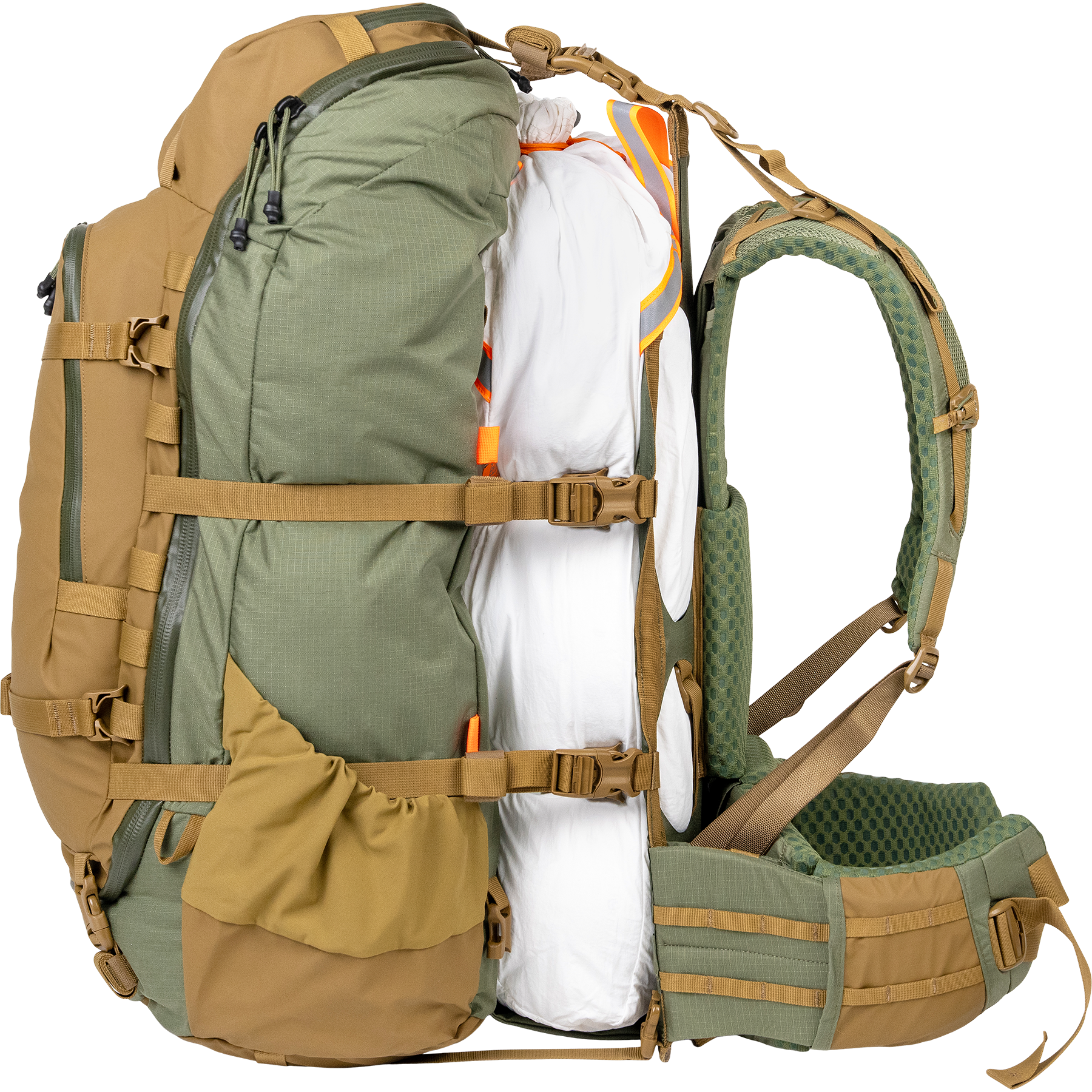 With 3,845 cubic inches of capacity, the versatile Sawtooth 65 pack is designed for two- to three-day backcountry hunts. It’s chock-full of functional features, including a customizable yoke for a fine-tuned fit, a 270-degree zipper for easy access to the main compartment, and strategically located inner and outer pockets. As part of the Mysterium pack series, it also sports the Overload system for packing out heavy loads of meat.