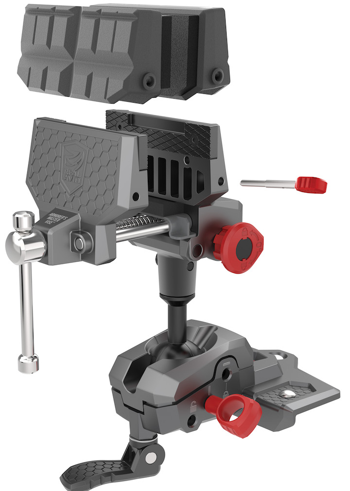 Designed for DIY gunsmiths, the Master Gun Vise features a ball-and-socket mechanism that lets you rotate your firearm 360 degrees in either a vertical or horizontal plane. Once the gun is in position, simply lock the clutch lever. The reversible vise jaw sleeves are padded on one side to prevent damage to sensitive wood or metal components, while the other side is grooved to securely grip gun parts.