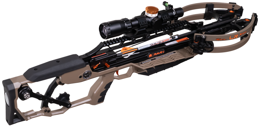 The Ravin LR is built for long-range precision, delivering 450 fps and 222 foot-pounds of kinetic energy for accurate shots up to 135 yards. Its rifle-inspired design enhances balance, reduces recoil and improves stability. An adjustable cheek comb and butt pad provide a custom fit, while the silent cocking and de-cocking system ensures stealth. Equipped with an adjustable 1-8×24 scope and premium arrows, it’s ready for action.