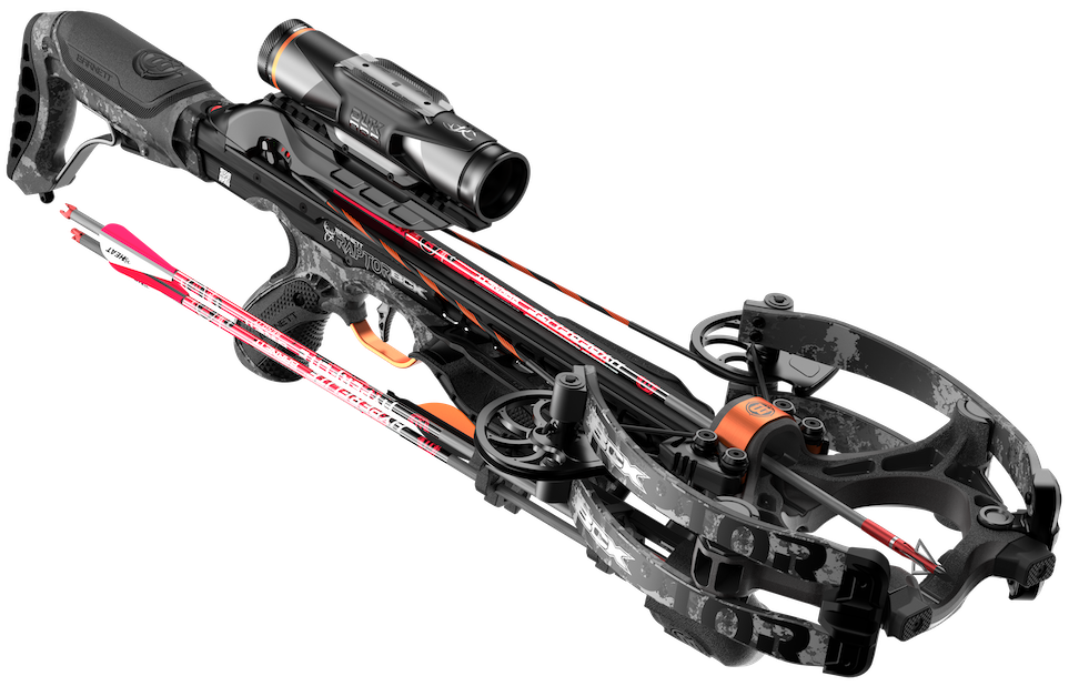 Weighing in at just 6.9 pounds, the Barnett Hyper Raptor BCX delivers speeds of up to 425 fps with remarkable accuracy thanks to the self-timing Infinity cams, Halo cable system and Canadian-made TriggerTech Trigger with anti-dry fire. Complete with advanced optics options, a durable design and vibration dampening, this ultra-compact crossbow’s premium features promise unmatched hunting performance.