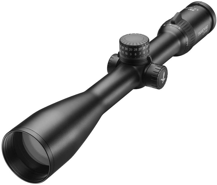 Swarovski’s latest riflescope line, the Z5+ series, offers premium components, a lightweight design and in-the-field versatility. Included are three models built on a 30mm tube: 2-10×42, 3.5-18×50 and 5-25×56. All are available with an illuminated or non-illuminated reticle, and with or without the newly designed ballistic turret, which delivers an expanded 80 MOA adjustment range via user-friendly features for rapid, precise targeting.