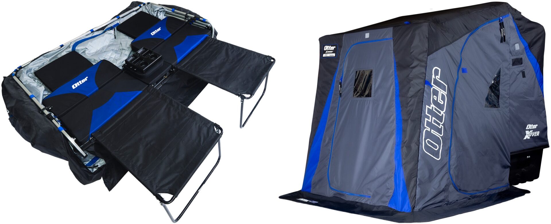 Featuring a three-piece reclining bench that folds flat into a single cot, this 35-square-foot insulated flip-over ice shelter (US$1,599.99) comes with accessories that can also transform it into a two-person sleeper.
