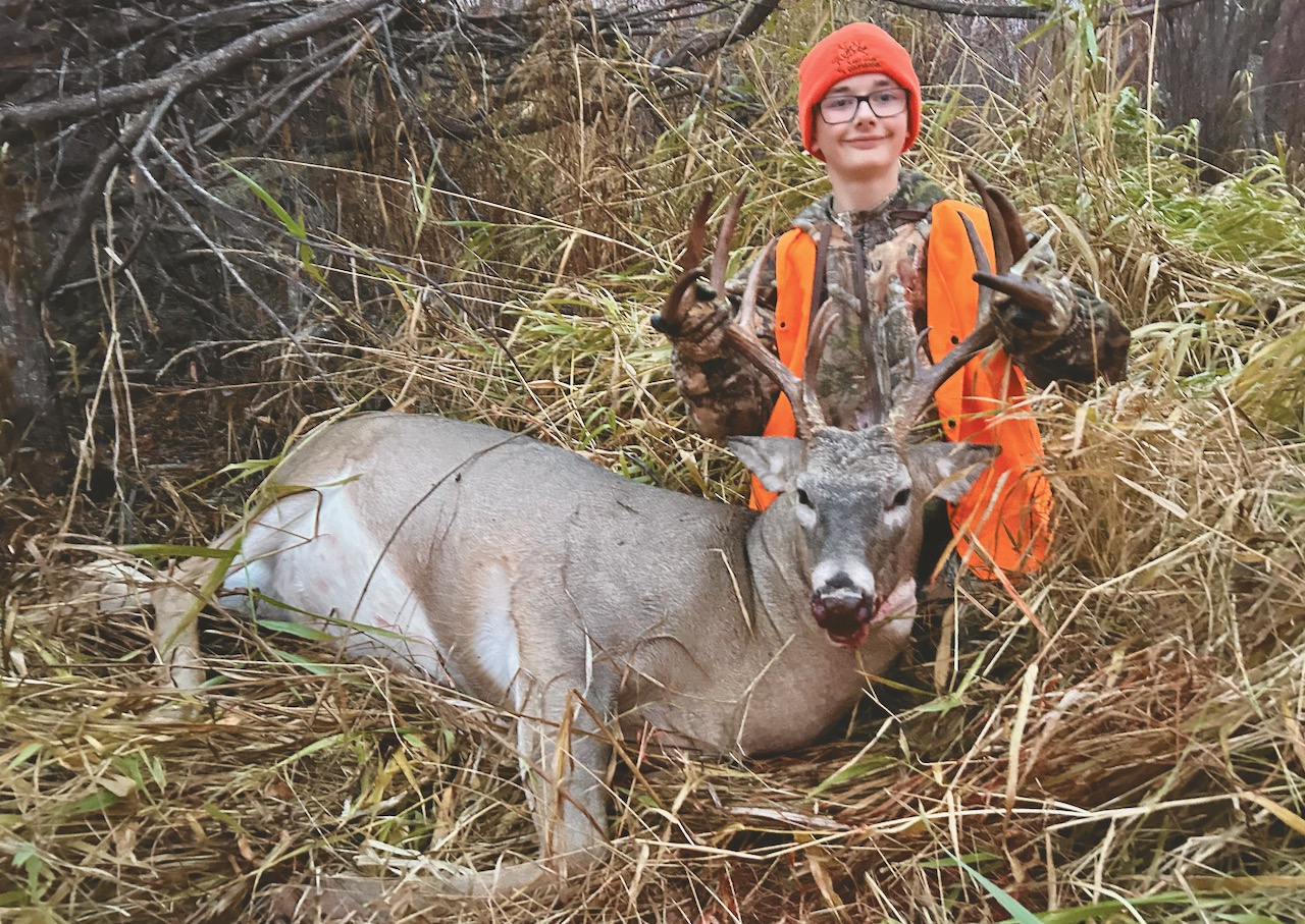 Just after a spike buck passed by but didn’t give him a shot, 13-year-old Riley Mischuk got a fresh chance with this beauty during Manitoba’s youth muzzleloader season last October. “He was pretty happy when this guy walked by the blind at 70 yards,” says his dad, Cory Mischuk.
