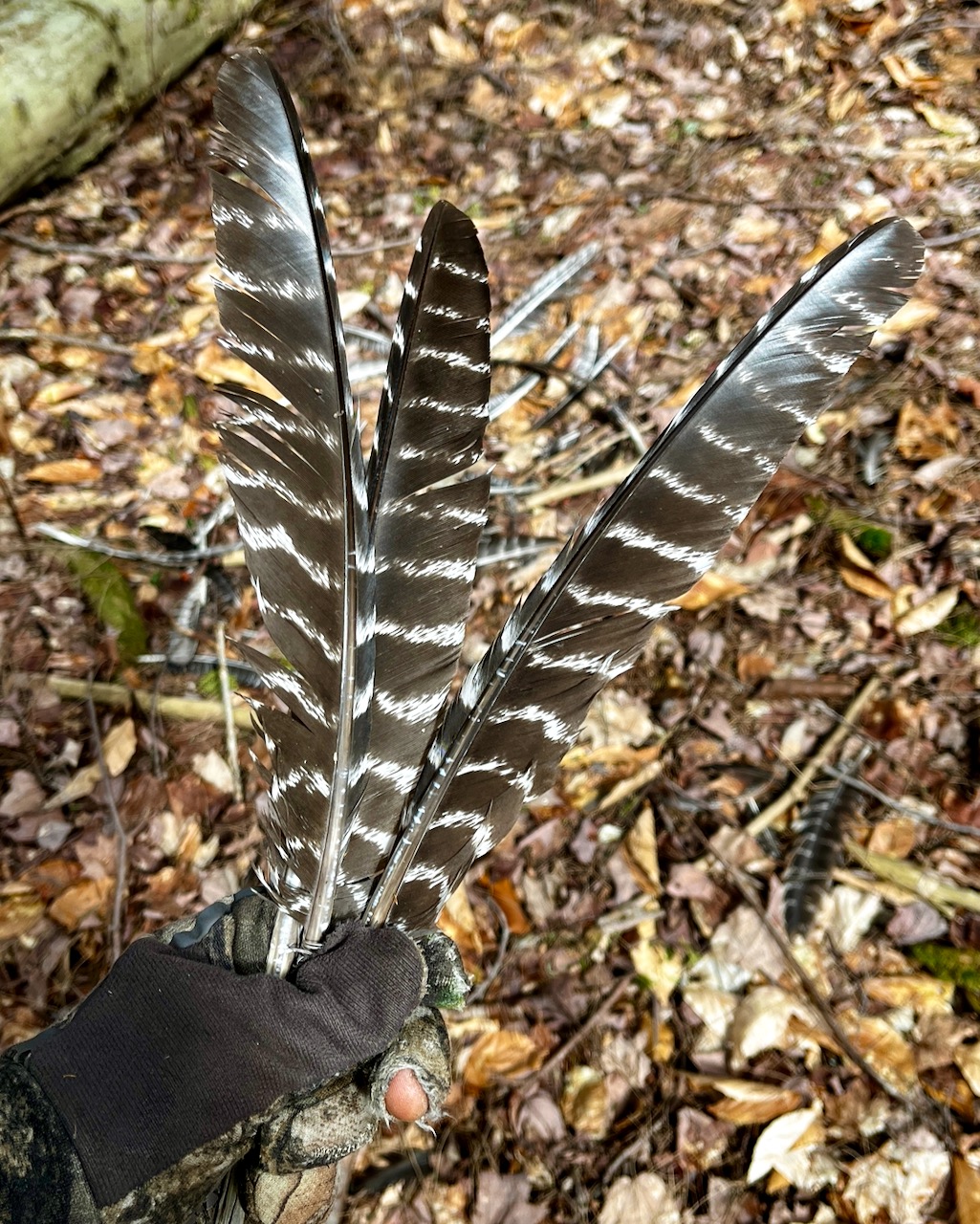 Looking for sign such as broken twigs, tracks, droppings and feathers can help you find these prime locations. It’s easy to confirm which trees the birds are roosting in, as the top portion of the branches will often be partially or completely stripped of bark. You’ll also usually find ample sign around the trunks of roosting trees.