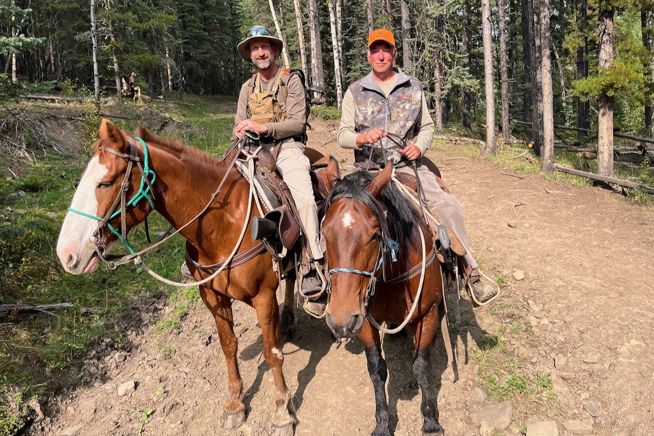 Soon, Vic and Roy arrived with the horses and we loaded up our gear. I’d assumed riding down the mountain would be easier than riding up, but that was not the case. As I leaned back in the stirrups and guided Chunky back down over the rocks and through the chicane of trees, I never was able to get comfortable in the saddle.