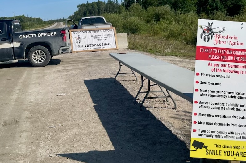 The Manitoba Wildlife Federation is urging police and the provincial government to remove a highway checkpoint erected by the Bloodvein First Nation, which cuts off access to a large area of provincial crown land on the east side of Lake Winnipeg.