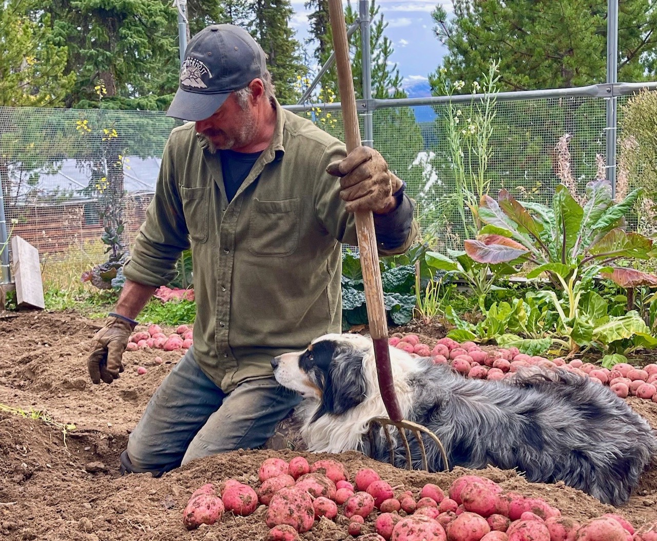 With -50°C winters and hard frost throughout the summer where we live, our wood-fired greenhouse has been a life-saver, allowing us to rotate crops from mid-March to the end of October. Planting vegetables in succession from our saved seeds ensures a continuous supply of fresh greens, which we also can, freeze and dehydrate for the winter pantry. Outside of the greenhouse, we can grow potatoes and brassicas for a three-month period thanks to a large frost blanket. Raising hardy foraging chickens for meat and eggs, meanwhile, ensures we have protein and the best nitrogen fertilizer for growing vegetables.