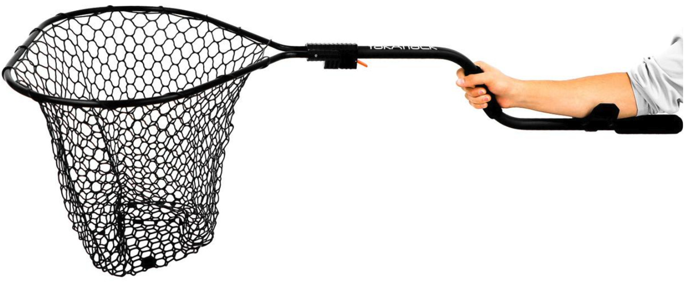 With its innovative forearm grip offering control and stability for landing fish with one hand, this 20-inch by 21-inch net is ideal for kayak anglers and any time you can’t set your rod down. With the included foam-covered extension, the full-rubber net can reach out to 54 inches. And for compact storage, the hinged handle folds flush to the mesh netting and locks in place.