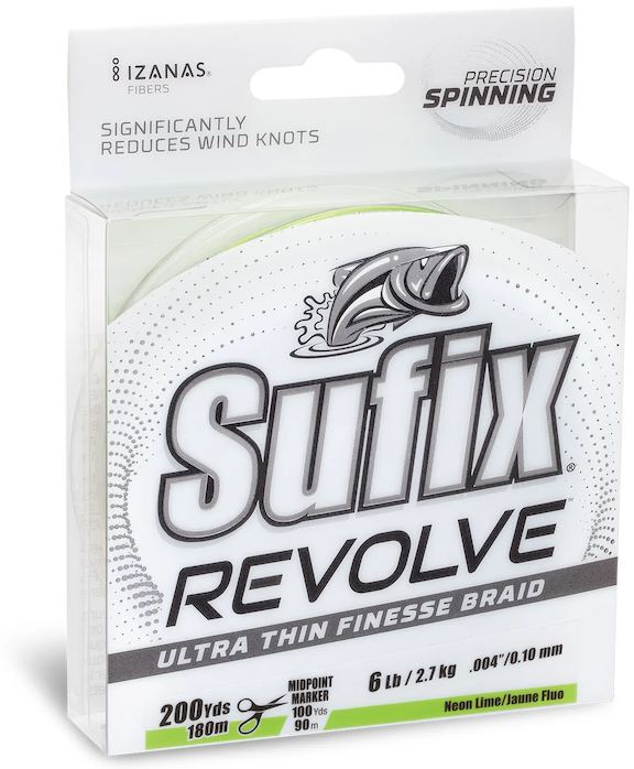 Sufix designed this high-performance braid for finesse applications, with a minimal diameter for casting light lures. It also promises improved lure action, better knot strength and fewer wind knots. Ideal for both spinning and lightweight baitcasting reels, it comes in high-vis neon and low-vis green, and six-, eight-, 10- and 12-pound strengths. The 200-yard spool is marked at the midpoint so it can be split between two reels.