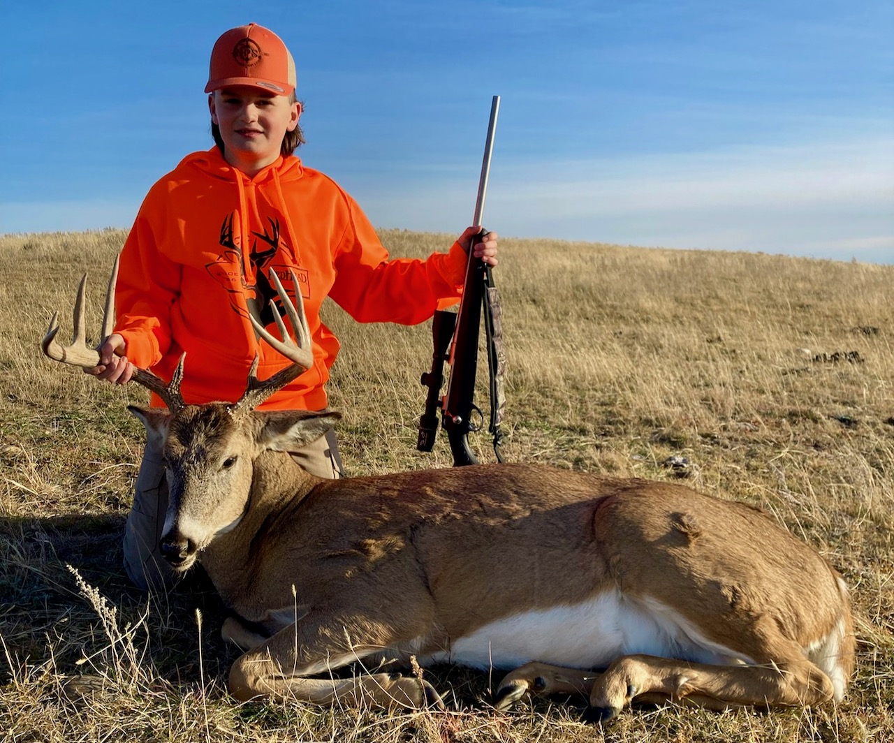 Carter Steinkey, 12, celebrated his first-ever whitetail last November following a successful hunt with his dad, Shane, in Saskatchewan’s Maple Creek area. “The buck was sitting with a hot doe at 80 yards,” says mom Jaime, who submitted the photo. “One well-placed shot was all it took.”