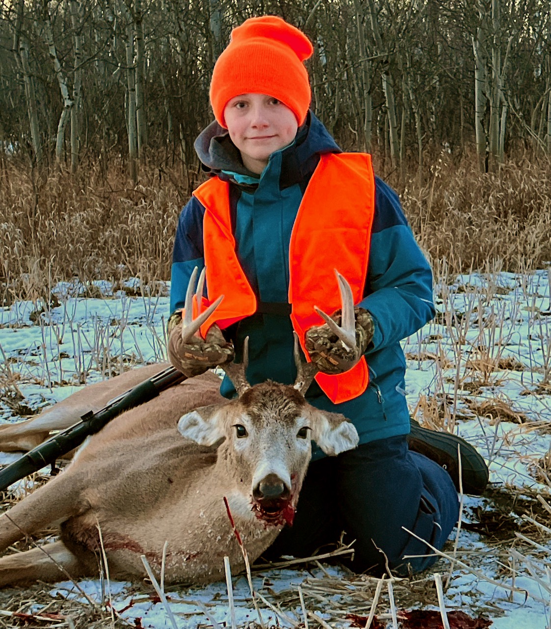 After many days sitting in a deer blind, 12-year-old Colten Lawrence harvested his first deer on December 1, 2023, on farmland near Bruno, Saskatchewan. He was hunting with his dad, Rob, who took the photo. “As a long-time hunter, it was a very proud moment to get to experience this with my son,” Rob says.