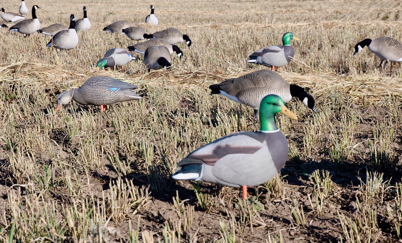 Not only are these the most expensive decoys, they’re also very bulky, making them more of a challenge to transport and store. Only a couple of dozen will fit in the box of a truck, for example, so a trailer is usually required. Although full-body decoys can be stacked, it’s best to keep them protected in decoy bags, which makes it longer to set them up and put away. And since they’re bulky, it takes time to move just one or two if needed in the middle of hunt. Finally, given their size, they’re really only suited for hunting in fields with vehicle access.